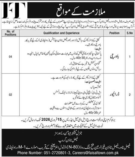 Candidates if you are seeking the Faisal Town Group Jobs 2026 in Islamabad, Online Application if yes. It would be best if you tried to complete reading this Faisal Town Group Jobs 2026 because you can easily apply for these vacancies, Cook, and Driver.