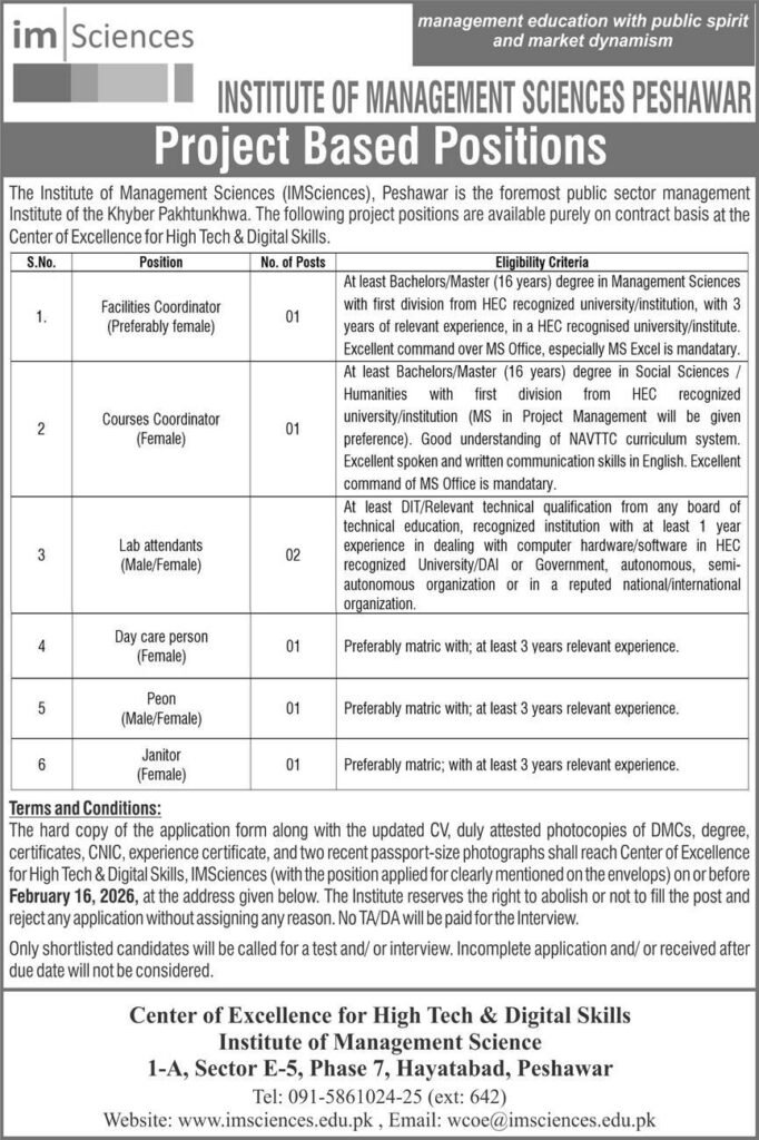 Vacancies Details of Institute of Management Sciences Jobs 2026