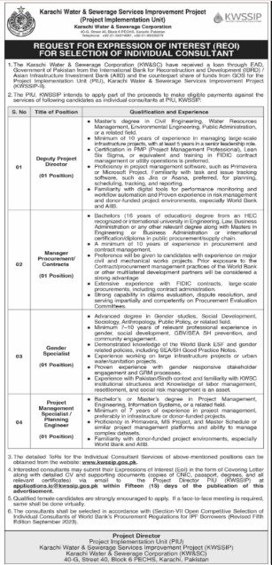 Candidates, if you are seeking the Karachi Water and Sewerage Services Improvement Project Jobs 2026 if yes. It would be best if you tried to complete reading this Karachi Water and Sewerage Services Improvement Project Jobs because you can easily apply for these vacancies: Deputy Project Director (01 Position), Manager Procurement/ Contracts