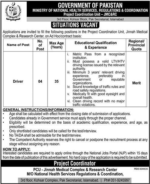 Candidates, if you are seeking Project Coordination Unit Jobs 2026 in Islamabad, apply now. It would be best if you tried to complete reading this Project Coordination Unit Jobs, as you can easily apply for the Driver position.