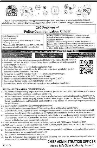 Candidates, if you are seeking the Punjab Safe Cities Authority Jobs 2026 In Lahore, if yes. It would be best if you tried to complete reading this Punjab Safe Cities Authority Jobs because you can easily apply for this vacancy, Police Communication Officer.