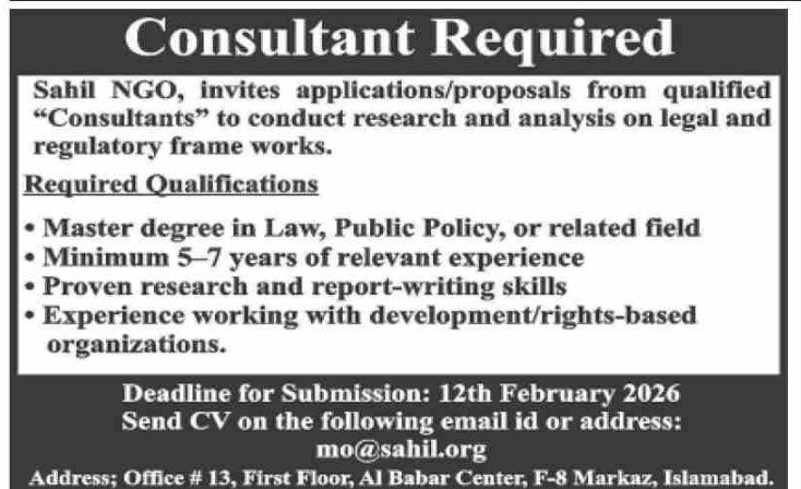 Candidates, if you are seeking the Sahil NGO Islamabad Jobs 2026, Online Application if yes. It would be best if you tried to complete reading this Sahil NGO Islamabad Jobs because you can easily apply for this vacancy as a Consultant.